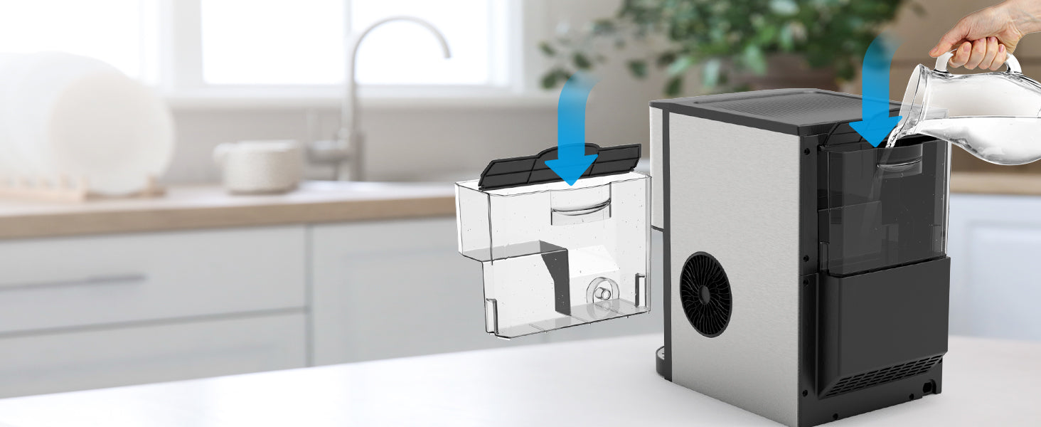 هناك طريقتان لإضافة الماء للاختيار من بينهما. الثلج يأتي منك، فكل المزيد لراحة بالك.